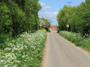On Thursday 14th May, however, everything changed. As we left our cottage and approached the lane we were confronted by a temporary warning sign saying “Grass Cutting”.