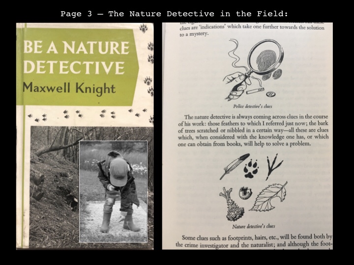 To reinforce this nature ‘detective’ approach, he inserted a sketch to compare a ‘Police detective’s clues’ and a ‘Nature detective’s clues.’