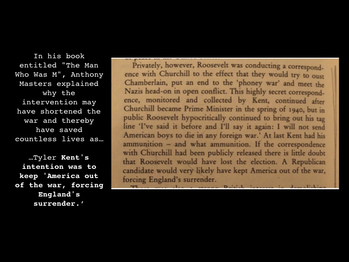 The correspondence could NOT have been more sensitive; In his book entitled “The Man Who Was M”, Anthony Masters explained why ‘M’s’ intervention may have shortened the war and thereby saved countless lives, as Kent’s intention was to keep ‘America out of the war, forcing England’s surrender.’