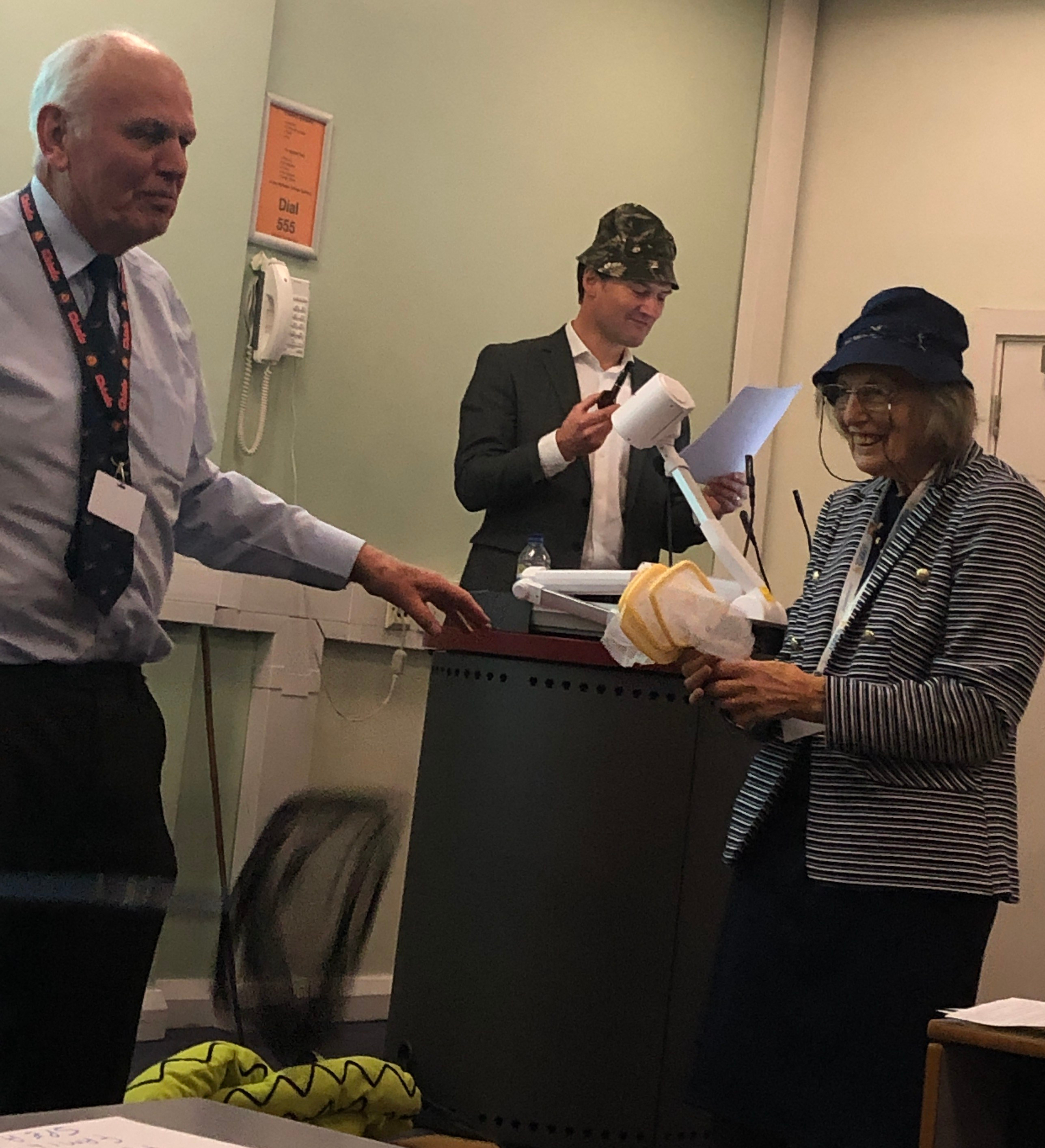 Photo taken during: “Newts, nadders and neophyte naturalists” – a dramatic interlude (A re-enactment of Maxwell Knight’s childhood encounter with youths and newts at a Surrey pond – John Cooper, Margaret Cooper, Simon King).